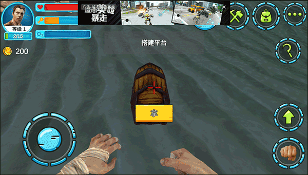 借助手头的道具打造新工具,助力增强筏子的强度与防御性能,以应对未知的危险。