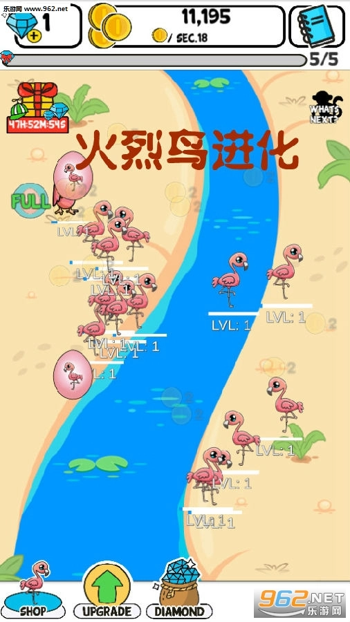 随着你的火烈鸟进化并投掷硬币,购买新的火烈鸟来赚取更多的钱