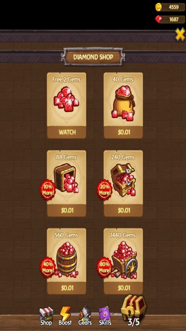 在放置类玩法的体验过程中,还包含了大量以特色地牢为主题的冒险游戏内容,其挑战项目也十分丰富多样。