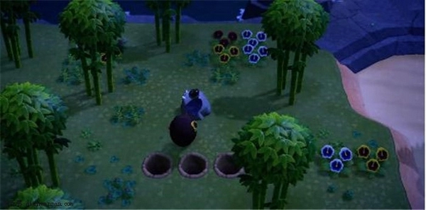 杂草清理完毕后,我们需要在敲击石头的位置后方挖三个大坑,由于敲击石头时会产生后坐力,这样做可以避免因后坐力影响而长时间无法获取矿石。