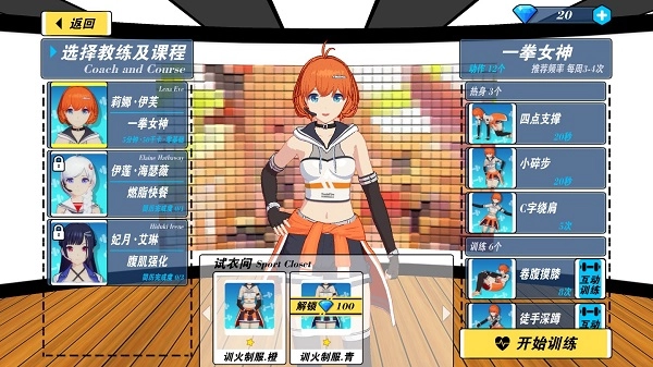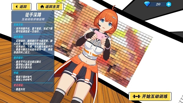 进入游戏后,玩家需要开始练习健身动作,每位美女教练所教授的动作各不相同。