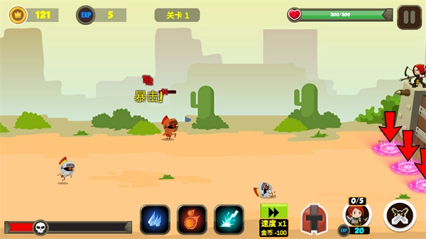 游戏下方设有三个技能,玩家能够借助这些技能消灭敌人。