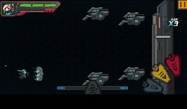 一款以拯救宇宙、执行清除任务为核心的冒险游戏,延续了复古FC风格的横版射击冒险玩法。