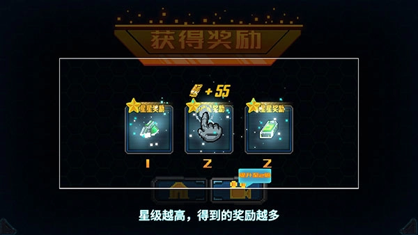 完成关卡后会得到奖励,星级越高,获得的奖励也就越多。