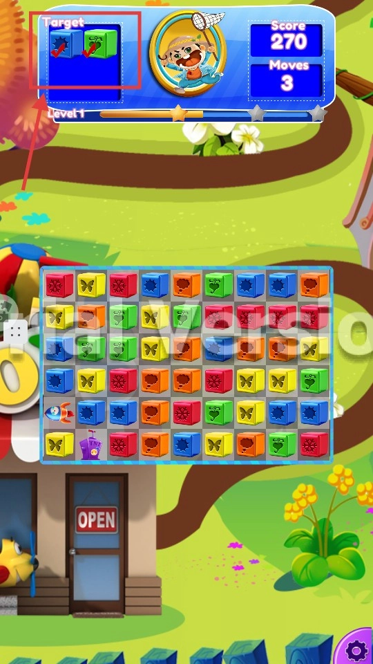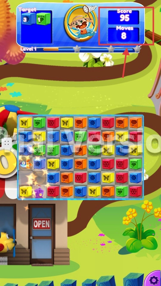 留意右上角的【Score】-【Moves】区域,按照步数来规划消除策略,优先处理能高效得分的方块或是目标方块。