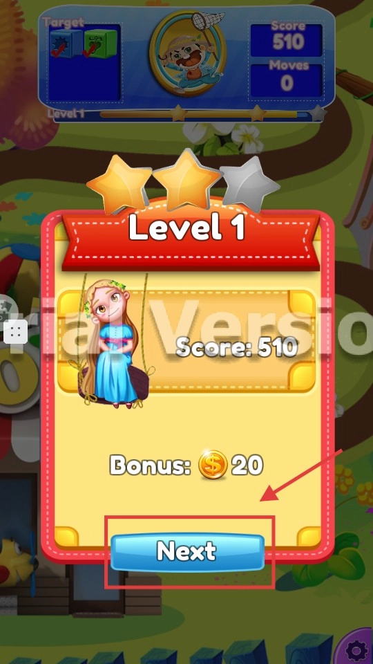 关卡完成后点击【Next】按钮,即可开启下一关的挑战,并且能获得通关的金币奖励。