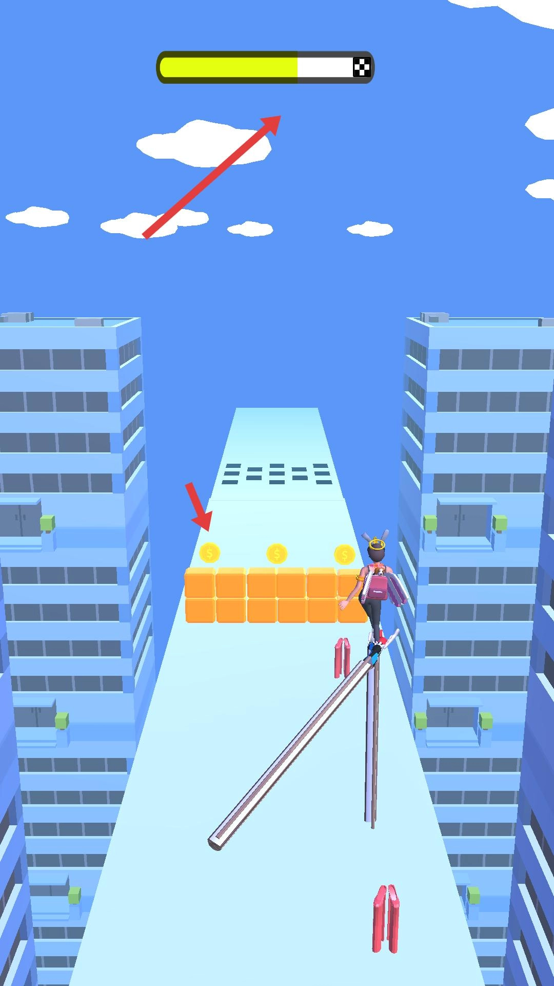 竹竿平衡操作:进入高空区域后,要让角色稳定在两根竹竿之间;若出现轻微晃动,可通过反向滑动来快速调整偏移角度。