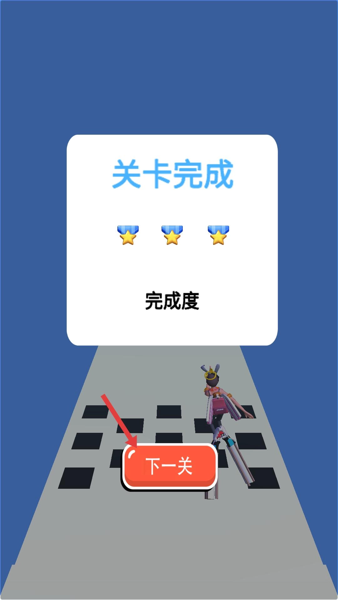 抵达终点,关卡顺利完成,获得三星评价。点击下一关,开启全新挑战;还能总结过往经验,优化操作方式,向更高评价发起冲击。