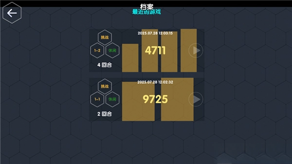 1.要是玩家近期完成过某一关卡,能点击左上角的图标进入记录界面。