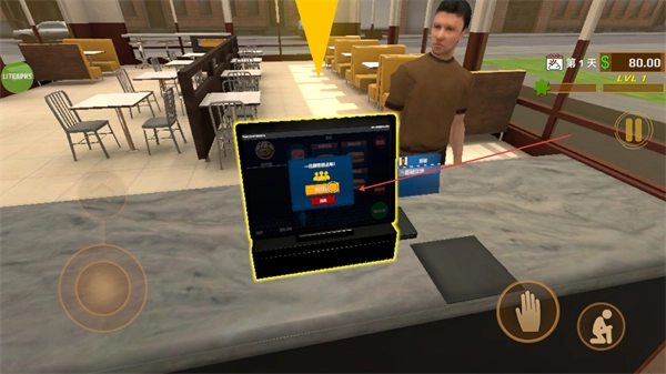 1、操控角色走到柜台的设备旁,按照提示与该设备进行交互,为处理订单做好准备。