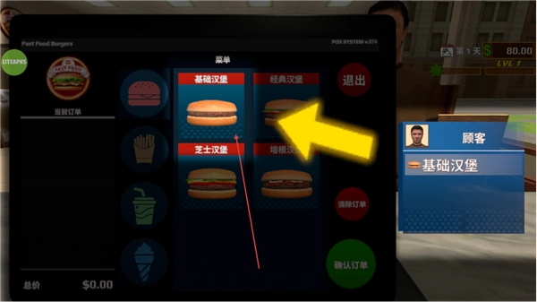 初始提供的餐品类型较为单一,不过随着店铺经营等级的不断提高,就能陆续解锁薯条、披萨、鸡块这类丰富多样的快餐品类,以此来充实菜单选项,进而吸引更多的顾客。