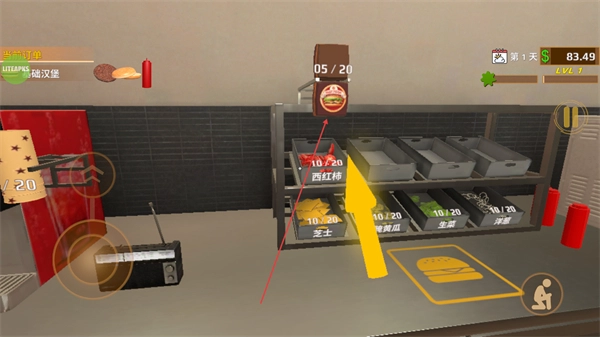 4、移步至食材区域,领取制作基础汉堡的必备食材,为餐品制作做好准备。