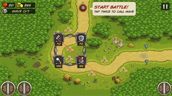 2、在战斗界面按照STARTBATTLE!的提示,布置像70金币的护甲塔这类防御塔,做好迎敌准备。