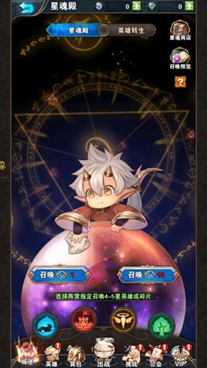 除了上述内容之外,还能召唤星魂殿。星魂殿的召唤方式较为特别,它能够召唤特定阵营的英雄。不过,召唤星魂殿需要先满足一定条件,即拥有星魂币和星魂水晶。这两种物品的获取难度相对较高,感兴趣的玩家可以关注游戏内的相关活动。