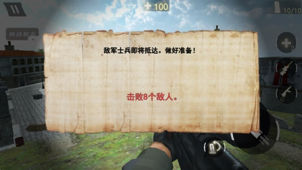 4.点击准星进入狙击模式,将准星对准敌人点击射击按钮,将8名敌人全部消灭即可闯关!
