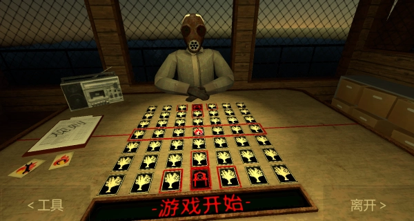 1、进入游戏后,面对诡异面具人相关界面,点击开始游戏,无需复杂前置流程,快速开启卡牌对决冒险。