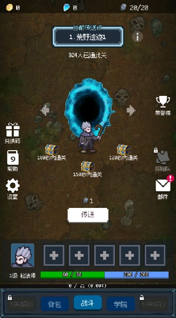进入游戏后,点击下方的传送按钮,即可开启第一关的冒险挑战。