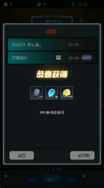 3、开服礼包记得领取,里面有不少奖励,点击邮件就能拿到。