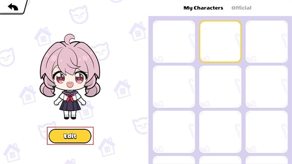 3、选好模板后,点击黄色的“edit”按钮即可开始编辑角色。