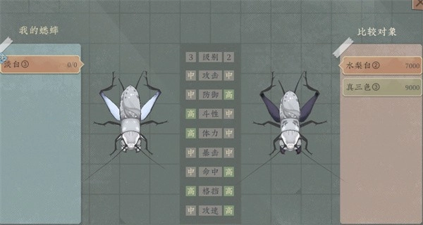 这就算是进入正题了,斗蛐蛐时同体质的蛐蛐只能跟同体型的较量,玩家做出决策后,接下来就全凭蛐蛐自身的本事和运气了。