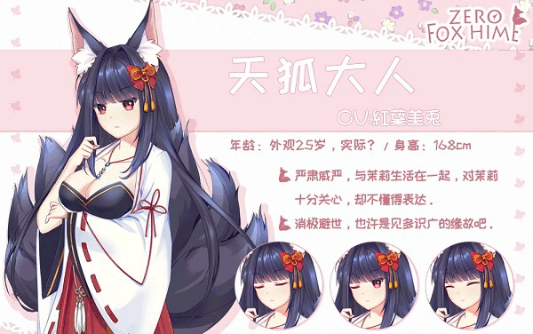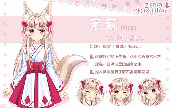 《狐姬零》是AsicxArt工作室开发的视觉小说游戏。不同于部分有分支选项的galgame,它没有任何剧情分支与选择节点。游戏的背景音乐柔和轻快,初次进入主界面听到时便让人沉浸其中,治愈感十足。