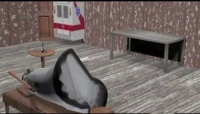 这个房间藏着1.5版本更新后新增的彩蛋:墙上挂着一幅画,把它碰掉后过一会儿会自动复位;画掉落的位置后藏着一个拉杆,点击拉杆就能触发机关,让书柜移动并露出一间密室。在密室里找到一本书,将它放在台面上,就能看到被手铐锁住的奶奶(相关画面因可能引起不适已做马赛克处理)。