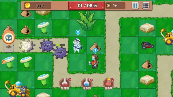 这是一个以病毒抵御为核心的生存塔防玩法,玩家需要部署各具特色的角色来构建防御阵线,并结合巧妙的位置规划来阻挡病毒的入侵。