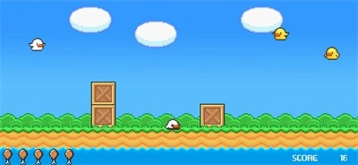 《鸭鸭启示录》是一款特别有趣的像素趣味射击游戏,面对在蓝天上面飞行的鸭鸭,玩家要做的就是将他们射击下来,趣味的玩法相信你会很快的掌握的,快乐的冒险从现在开始,自由的在游戏里面进行属于自己的冒险挑战吧。不断地获取更高的分数,享受这款游戏为你带来的趣味吧。