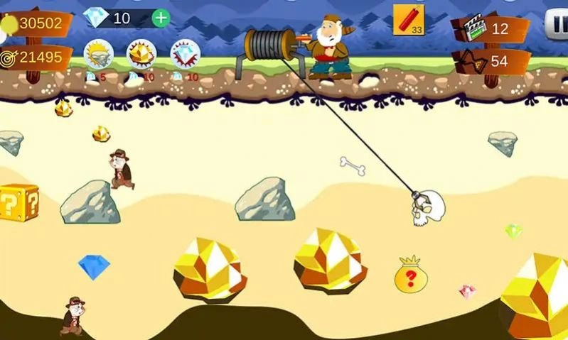 在限定时间内收集到足量的黄金与宝藏,以此来提高你的游戏等级。