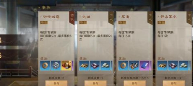 3、讨贼与攻城:能获取铜币和同盟贡献等资源。