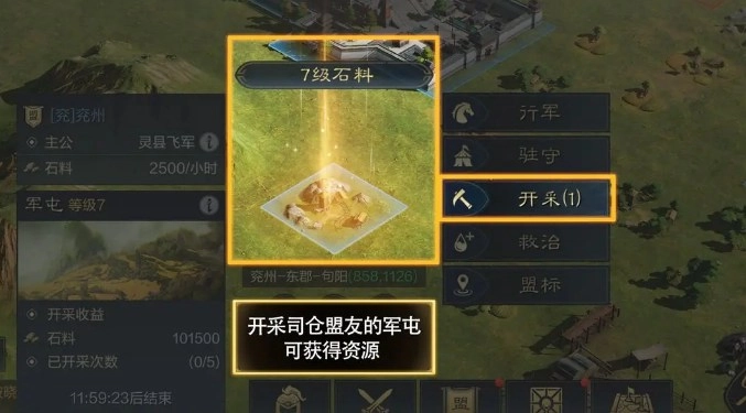 ④开采,由司仓选手发动职业技能军屯,同盟玩家就可以进行开采啦,每天一次机会