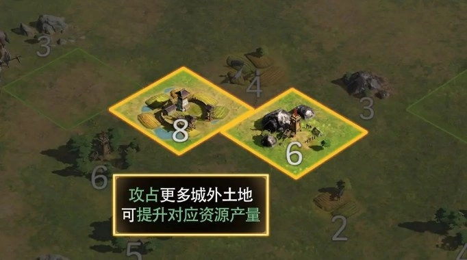1、攻占土地:击败守军并占领土地后,即可获得对应资源产量。