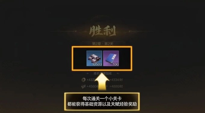 在军演里,每次通关一个小关卡,都能获得基础资源以及天赋经验的奖励。