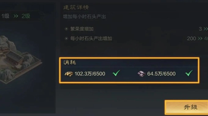 1、内城建筑:建造和升级磨坊、石工所、木工所、冶铁厂、民居可提升对应资源的产量。