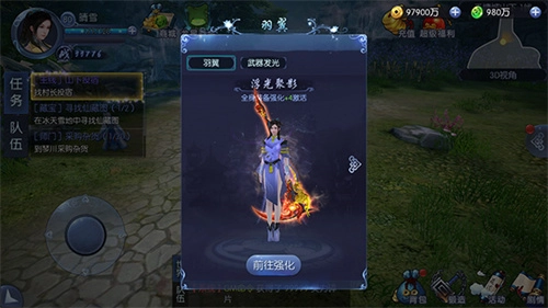 当全身装备强化等级达到4级时,角色身上便会显现出初级羽翼光效。