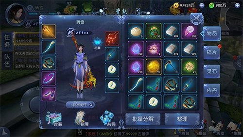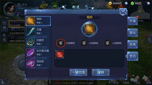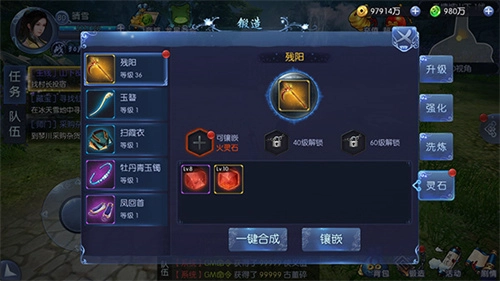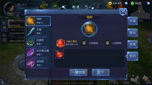 同类灵石可通过“一键合成”功能持续向上合成,灵石等级越高,其附加属性也就越强。
