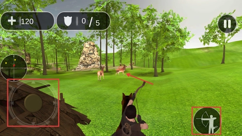 角色的移动可通过操控左侧虚拟摇杆来实现,而瞄准与拉弓的动作则由右侧按键来完成。
