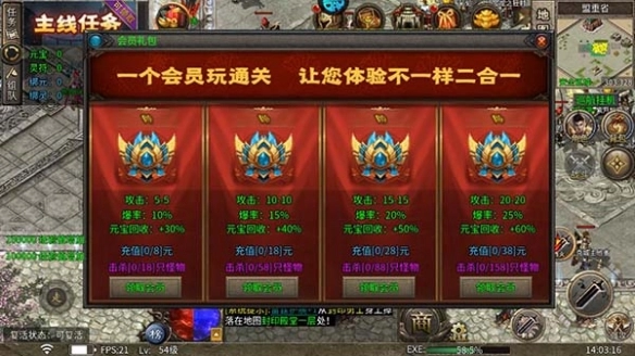 2、累计杀怪免费开通会员,彻底告别氪金门槛。