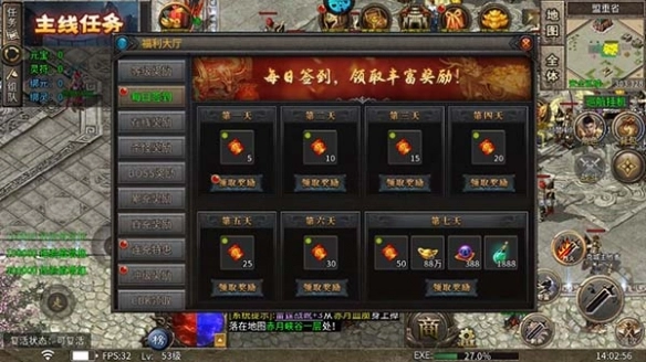 1、每天登录签到就能领取真实充值红包、元宝和各类材料,即使不额外花费也能提升实力。