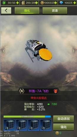 我建议玩家们可以优先提升导弹发动机,但四件装备最好统一每10级一起升级一次,这样才能达成装备大师的条件;另外装备强化需要消耗大量金币,从中期开始还是以提升主机为主要方向比较合适。