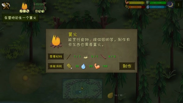 生活在野外,拥有一个住所是最基本的保障,玩家可以通过收集木材来搭建属于自己的帐篷。