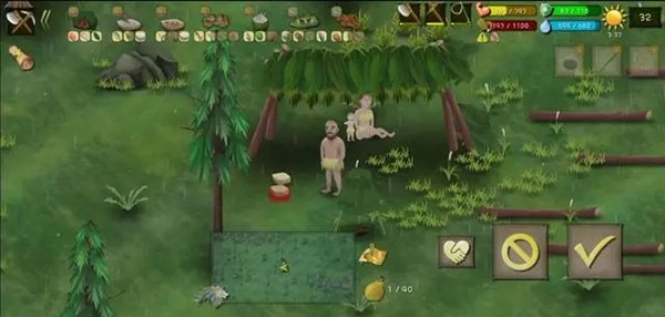 原始社会想要生存下来少不了火和食物,生火需要储备木材,而食物可以通过捕猎获得,玩家可以设置陷阱或者利用抓鱼工具,来捕得各种野味。