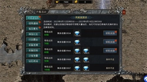1、新手玩家刚进入游戏时参与开服活动,通过升级完成相应活动任务后,就能领取丰厚奖励。