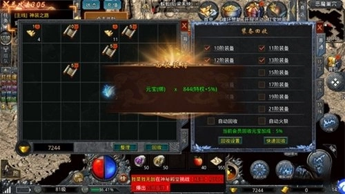 4、回收完成之后就可以获得对应的元宝以及特权。