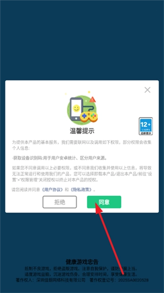 1、第一步先启动游戏,仔细阅读《用户协议》与《隐私政策》,并点击同意;
