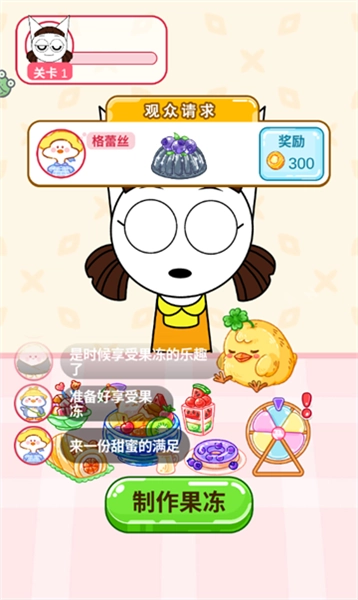 果冻美食屋是一款主打果冻制作的休闲游戏,巧妙融合了模拟直播与吃播解压元素。玩家需开启直播进行果冻制作,有时要依据观众需求来操作,通过点击和拖拽完成熬煮、调配、冷却等环节,最终做出符合要求的果冻。制作过程中会收获观众的点赞与打赏,这些礼物可兑换金币,用于解锁新原料、装饰及新场景。