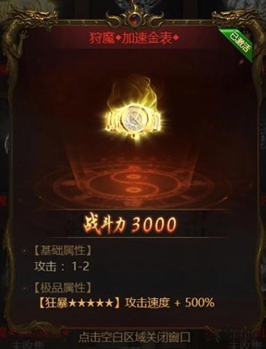 6、登录就能领取神器“加速金表”,可提升500%攻击速度,1秒5刀不再是土豪专属福利。