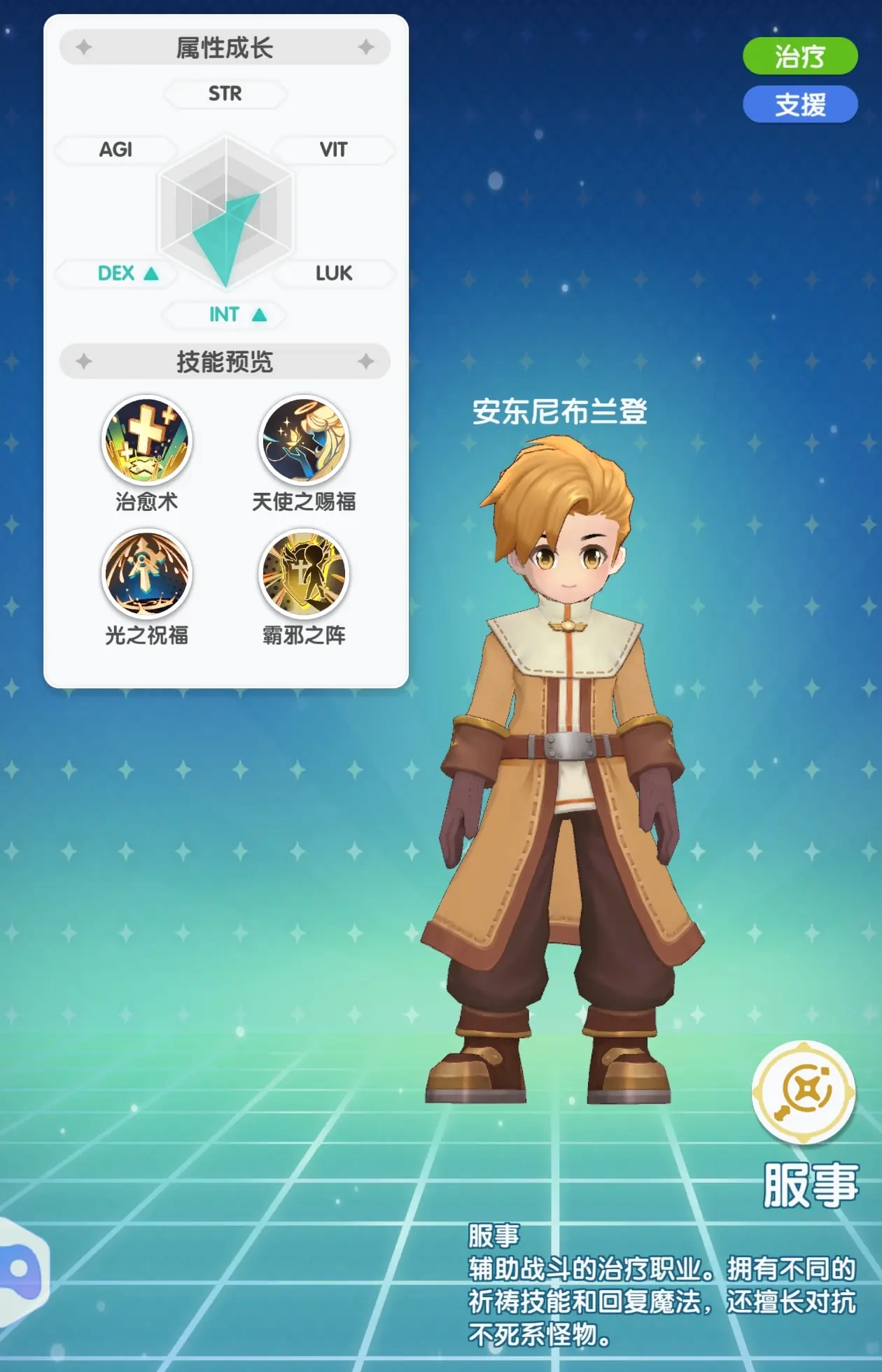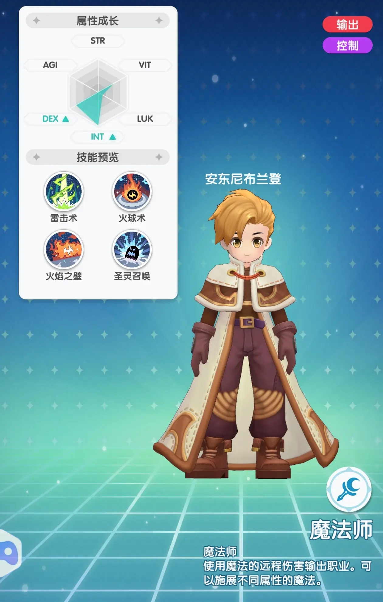 智力int:增加角色最大sp,魔法攻击,魔法防御。