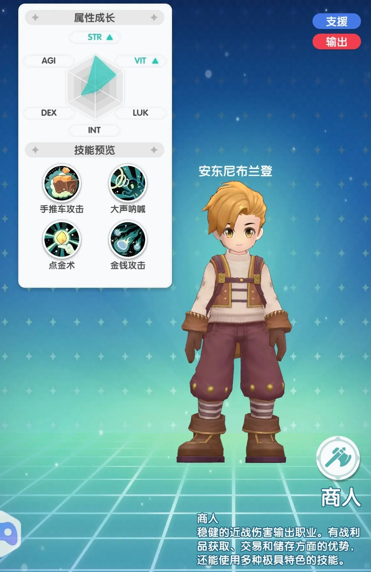 商人具有独有的摆摊以及生产制造玩法