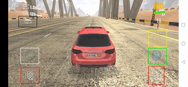4、红色方框内的按钮是刹车,虽然无法完全停下来,但是能有效降低车速;白色方框内的按钮是汽车灯光,绿色方框内的按钮是加速,黄色方框内的按钮是时间减慢,黑色方框内的按钮是改变汽车视角。